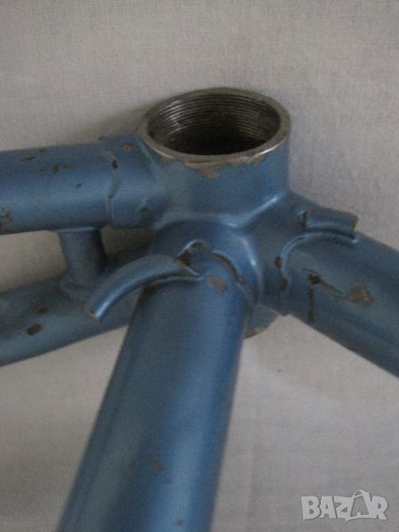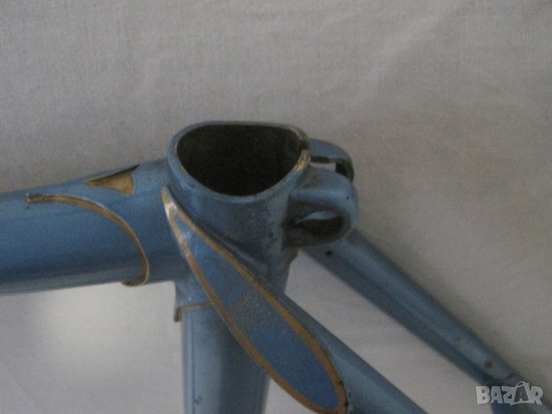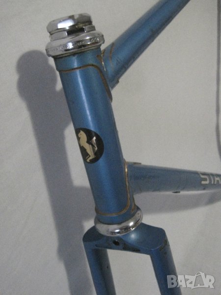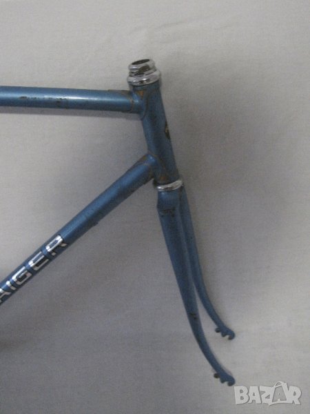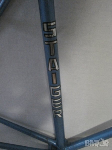 Стар модел хроммолибденова/CR-MO/ шосейна велосипедна рамка STAIGER-made in Germany.Рамката е с уши/dropouts/Campagnolo.Рамката е за седлово колче с размер 26,4мм,размерът на средното е 1,37x24.Размерът е-560мм. седлова туба и 540мм. хоризонтална.Рамката е за палцови команди със скоба захващащи се на долната туба,жилото на задната спирачка се захваща със скоби към хоризонталната туба.Вилката е ZEUS 2000.Чашките на вилката са TANGE-Japan.Теглото на рамката така,както е заснета е 2850грама.Продава се това,което е заснето и описано в обявата!!! Без куриери,само лично предаване!!!