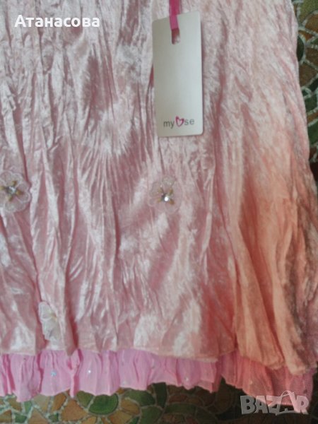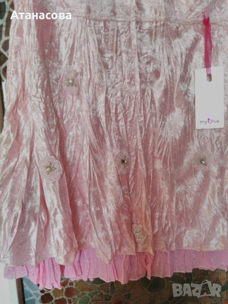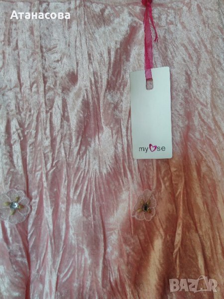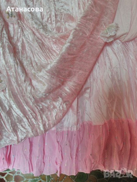 Пола с цветенца от намачкан ефектен плат . Има копринена подплата . С паднала талия . Ципа е отзад .