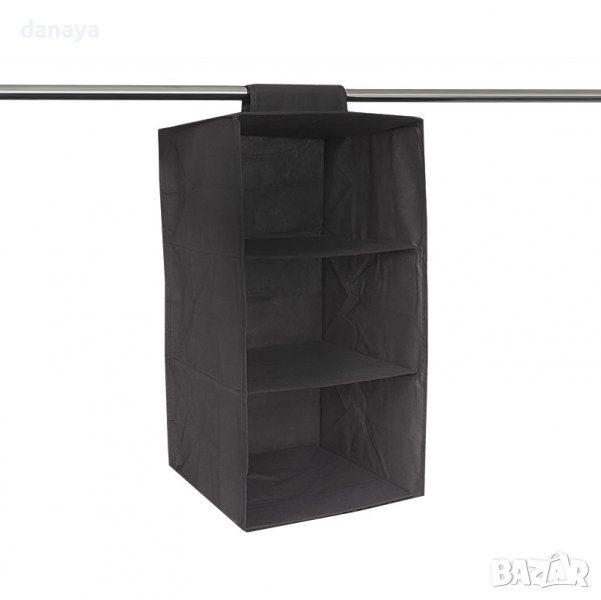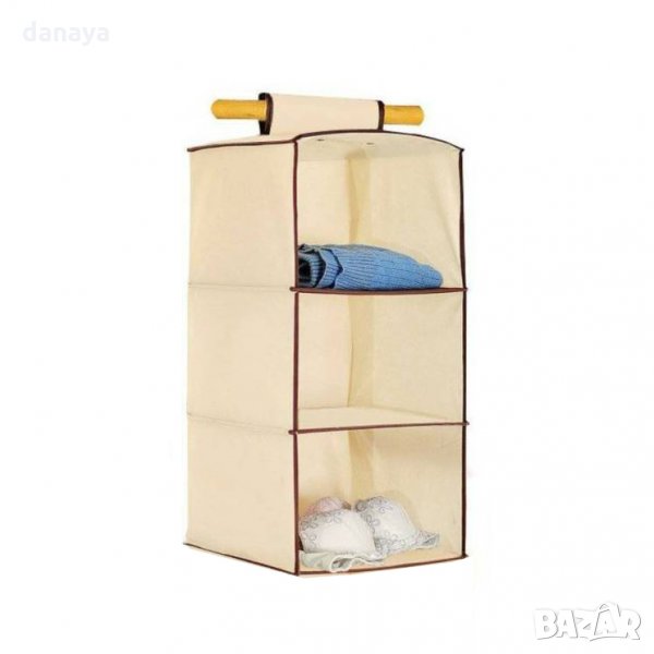Рафт за дрехи. Сгъваем органайзер за гардероб с 3 отделения за съхранение на дрехи и аксесоари. Органайзерът има удобна дръжка за закачане в гардероба за лесна видимост и подреденост на дрехите. Може да поставите сгъваемата кутия в гардероба, в дрешника или друго място. Много удобен аксесоар и за пътуване, тъй като органайзера се сгъва и не заема място.