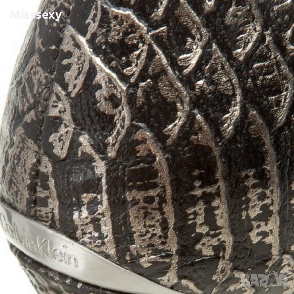 ПРОМО 🍊 CALVIN KLEIN № 37-38-39 🍊 Дамски кожени сандали в черно сребристо нови с кутия → Обява 21972391