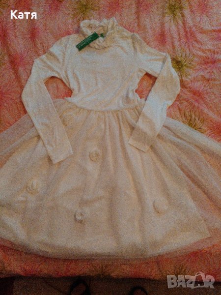 Нова, с етикет, бяла парти рокля на Benetton, по етикет е xs, но реално е S/ M, защото материята е еластична. За точни мерки, моля пишете. Уникално красива и секси рокля.