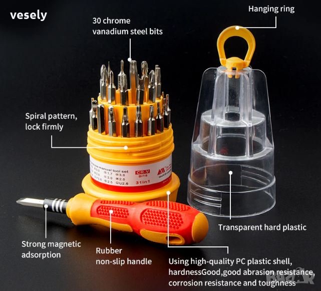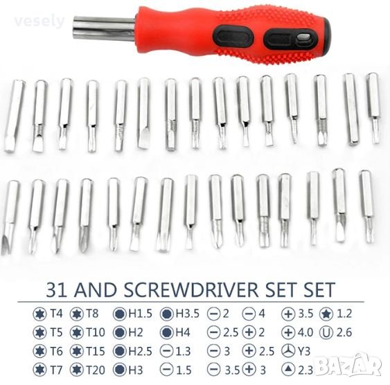 Комплекта 31 в 1 включва 30 бита