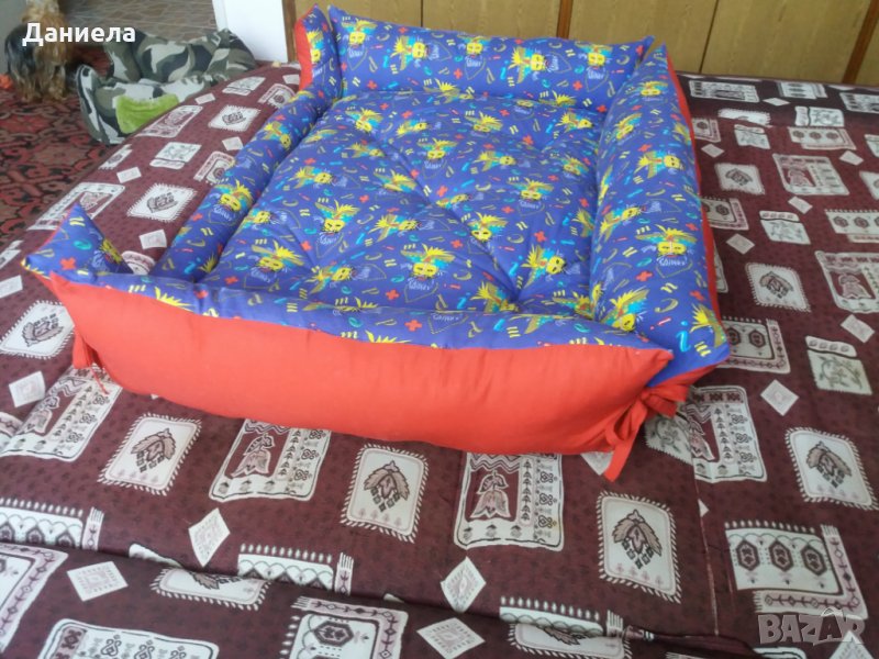 Двулицево легло за едра порода куче. Размери 100 /70, височина на борда 30 см. Меко, уютно и комфортно. Пълнежът е от силиконов пух. Дъното е от 4 пласта дебела вата. Изработвам и по поръчка в желан цвят, модел и размер.Цената е според размера. Разгледайте и другите ми обяви. Тел 0889354990