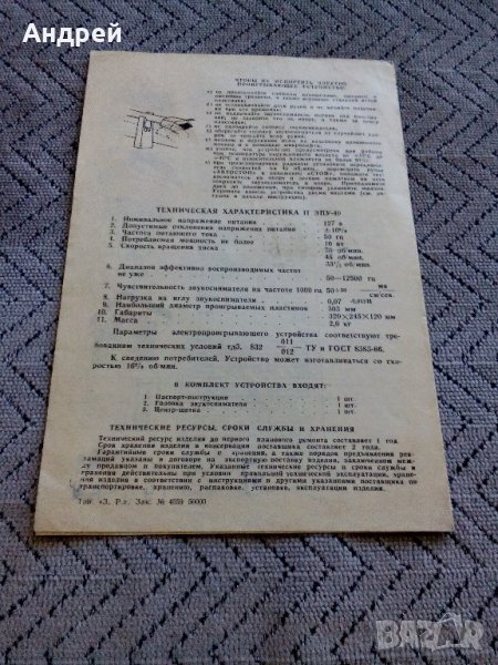 Паспорт грамофон ЕПУ-40 на Руски → Обява 22003274