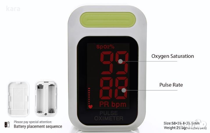 сатурация на човек са 94% - 98%. По-ниски показания могат да бъдат сигнал за хипоксия. Пулсоксиметърът измерва кислородното насищане на артериалният хемоглобин (Sp02), пулса (PR /bpm) и графика на сърдечната честота. Пулсоксиметърът е устройство, което трябва да притежава всеки човек, занимаващ се активно със спорт или дейности свързани с висока надморска височина. Вие може да използвате Пулсовият оксиметър за да проверите нивото на сърдечния си ритъм, след едночасов джогинг например.
