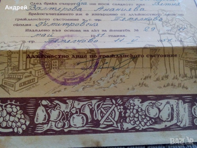 Удостоверение за граждански брак, снимка 1 - Антикварни и старинни предмети - 22010394 Удостоверение за граждански брак, снимка 2 - Антикварни и старинни предмети - 22010394 Удостоверение за граждански брак, снимка 3 - Антикварни и старинни предмети - 22010394 Удостоверение за граждански брак, снимка 4 - Антикварни и старинни предмети - 22010394 1/4