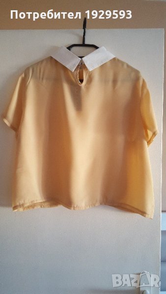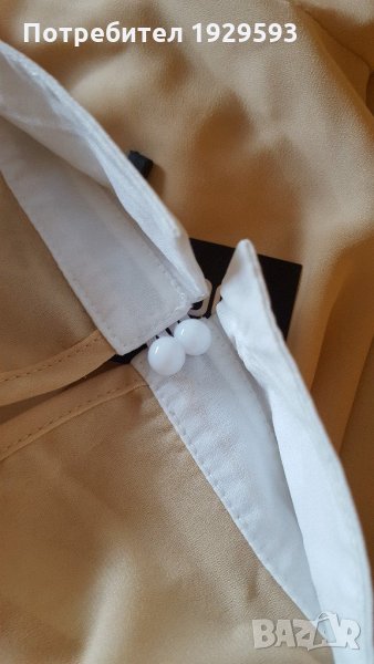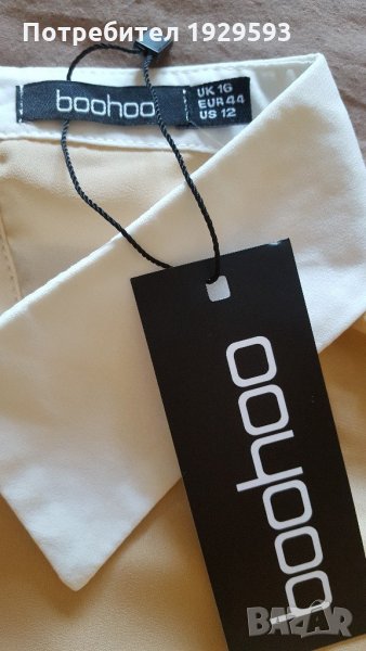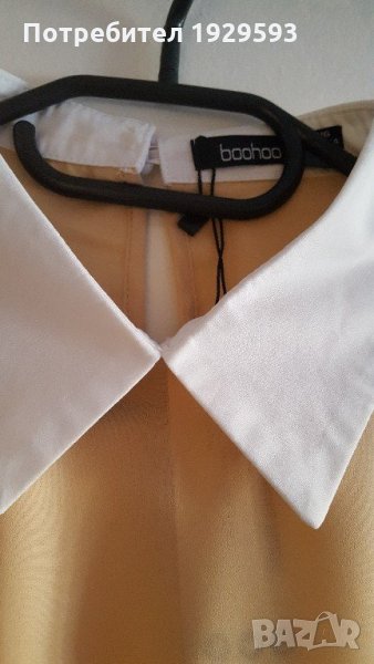 Дамска риза с къс ръкав, цвят бежов, с бяла якичка, номер 44, марка boohoo, нова с етикет