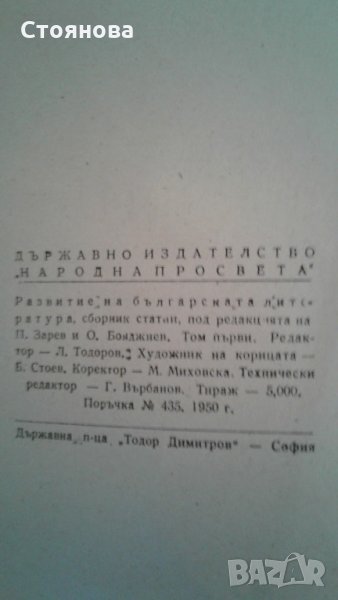 "Развитие на българската литература-том1"1950 г.; "Литературно критически статии-избрано"1965 г. → Обява 22046555