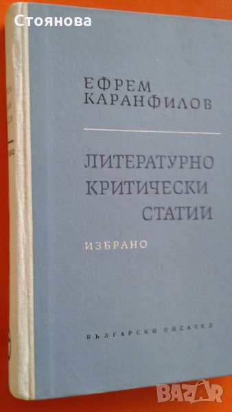 1."Развитие на българската литература-том1",под редакцията на П.Зарев и О.Бояджиев, ДИ "Народна просвета"-1950 г., твърди корици. Книгата е в запазено състояние за годините си с нормални следи от употреба - цена 18 лева; 2."Литературно критически статии-избрано" - Ефрем Каранфилов, Изд. "Български писател" 1965 г. Книгата е в много добро състояние - твърди корици, с обложка.Цена - 16 лева.
