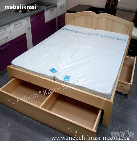 Спалня МОРЕ ОТ ЛЮБОВ изработена от естествено дърво бял Бор -в натуралния цвят на дървото. За матрак 144/190 см. Тя е с едно голямо и две малки чекмеджета. В место с чекмеджета може да се изработи с повдигащ механизъм с газови амортисьори и дъно, превръщайки пространството под леглото в удобно място за съхранение на вещи. Леглото може да се използва както с еднолицеви, така и с двулицеви матраци, посредством подматрачни рамки. Възможност за изработване по индивидуален размер и цвят. Чудесно решение за вашия дом.