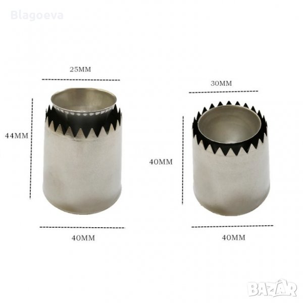 2 модела накрайници от неръждаема стомана за шприцоване на целувки.