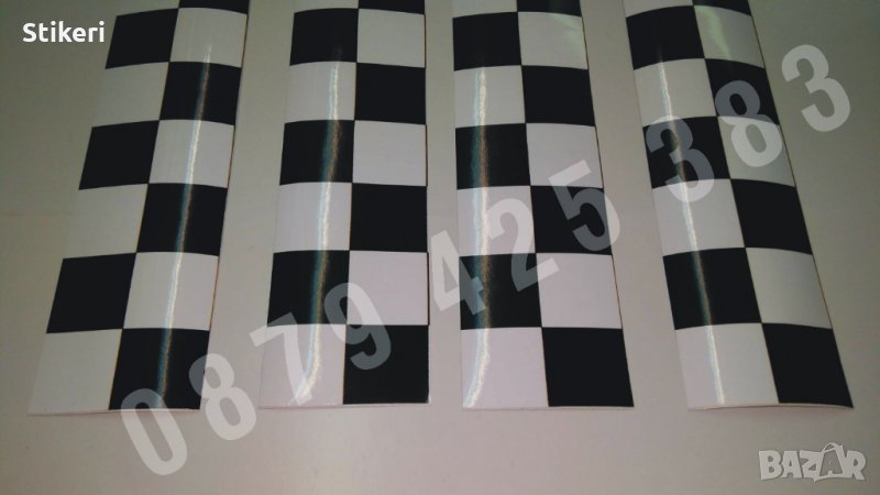 Комплект от 4 бр. ленти с квадратчета за такси напечатани върху качествено ПВЦ фолио с УВ-матов печат устойчив срещу надраскване, избеляване и миене. Размерът им е подходящ за автомобили с различна дължина на вратите, като излишната дължина се премахва след залепване с макетен нож или ножица. квадратчета за такси, kvadratcheta za taxi,lenti za taxi, ленти за такси, квадрати за такси, kvadtati za taxi, стикери за такси,stikeri za taxi, лепенки за такси, lepenki za taxi, taksi