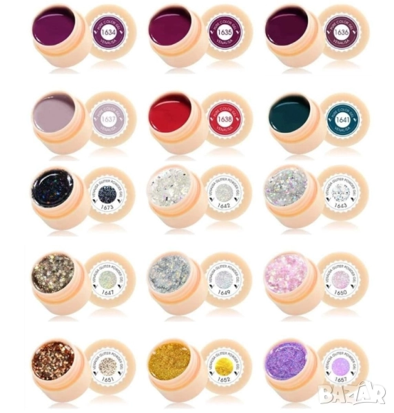 Боите са съвместими с всички гел лакове, изграждащи гелове, топ гел лакове и бази.