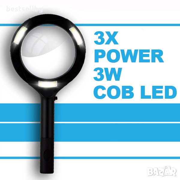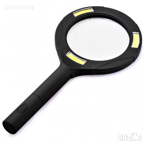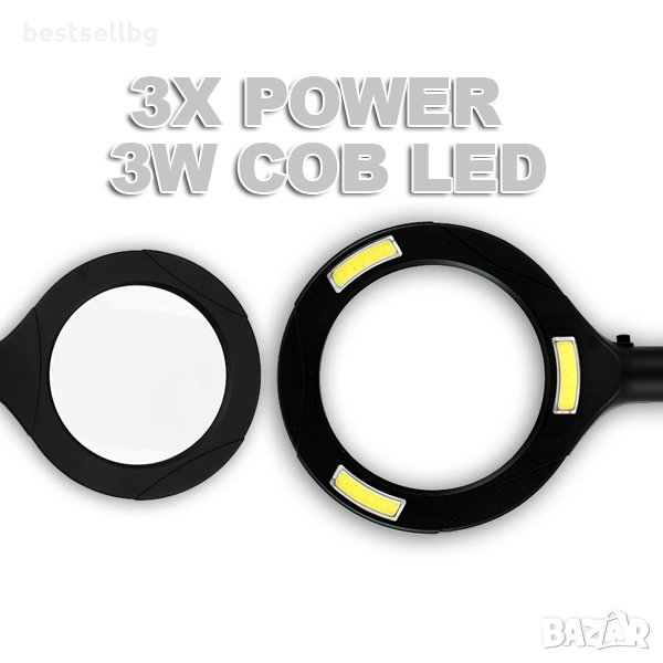 Професионална увеличителна ръчна лупа от стъкло с LED осветление 3W COB MAGNIFIER, голямо увеличение 3X и голям диаметър 80mm за четене, офис, домашна употреба, ремонт на часовници, електроника и други предмети, запояване, шиене на гоблени, бродиране, рисуване, проверка на камъни, злато, монети и др