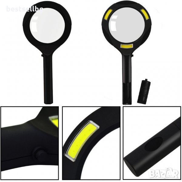 Малка ръчна лупа с LED осветление за ремонт на часовници, компютри, лаптопи, фотоапарати и други предмети, запояване, четене, шиене на гоблени, бродиране, рисуване, злато, маникюр, бижута, монети, всякакъв вид работа и други дейности, в които се изисква увеличение и осветление.