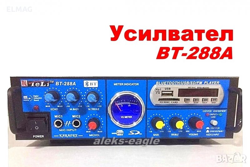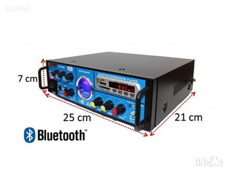 Усилвател с Мp3, USB, SD, FM РАДИО с ДИСТАНЦИОННО управление и КАРАОКЕ функция. Блутут.