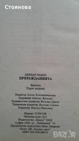 3)Бернар Ракен "Преражданията - открийте ги сами,докоснете се до вечността...",Издателство "Хемус"- 1996 г.,меки корици- цена 8 лева;