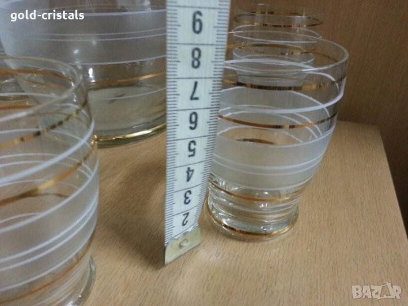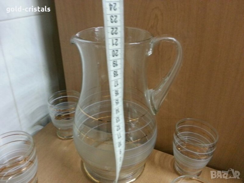 Ретро сервиз за вино 6бр чаши и кана с златни кантове без забележки ретро стар стъкло сервиз антикварен позлата кристално стъкло комплект сет лот старинен арт декор винтидж колекция стари антикварни предмети обзавеждане за дома и семейството подходящи за подарък за ценители и колекционери