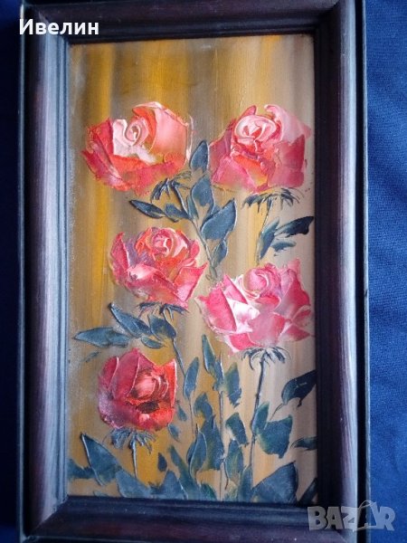 картина-цветя.масло на шперплат в дървена рамка с размери 15см/24см.