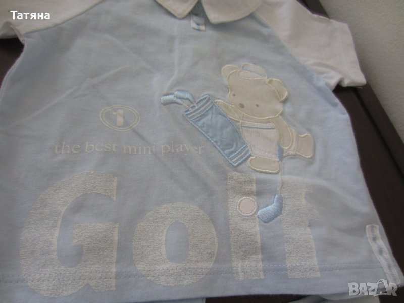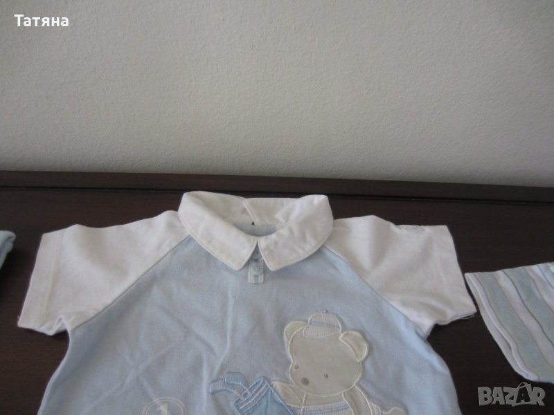 Комплекта е от много части ,виждат се на снимките./12части;дълга ританка ;къси гащиризони-2бр;къси панталони-1бр и 2бр дълги ританки-2бр;/те се комбинират с 3бр тениски и стават много комбинации;2бр шапки и ръкавици.Снимки 1 - 12.