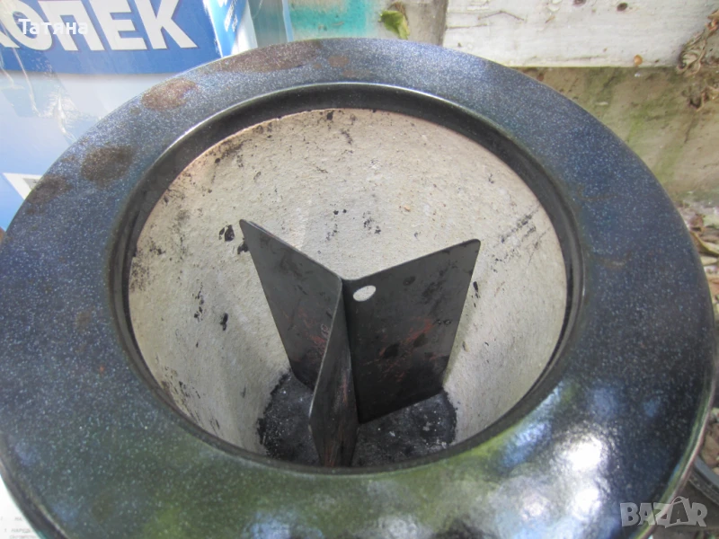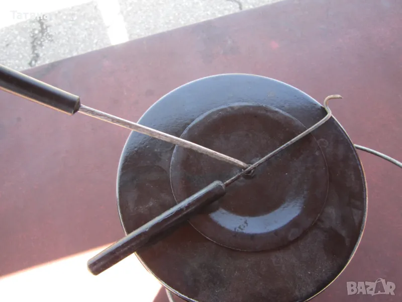 Капачето е керамично,също като оригиналното,защото то е счупено.Затова е монтирана тази тел,за да може удобно да се вдига и поставя, защото точно при честото преместване се счупи капачето.