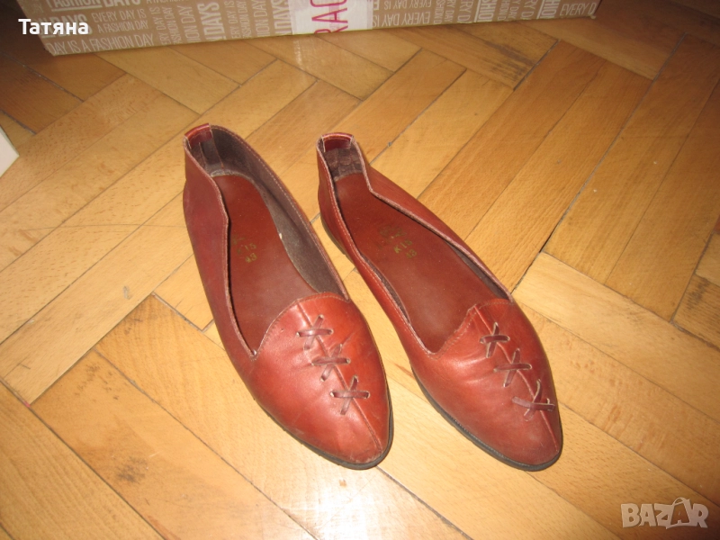 СНИМКИ 1-4 и сн. - 8 ; NOMER -39; Oбувани са 2-3 пъти.Подметката е естесвен гъон.Кожата е много качесвена/вижда се на снимка-2,от вътрешната страна.