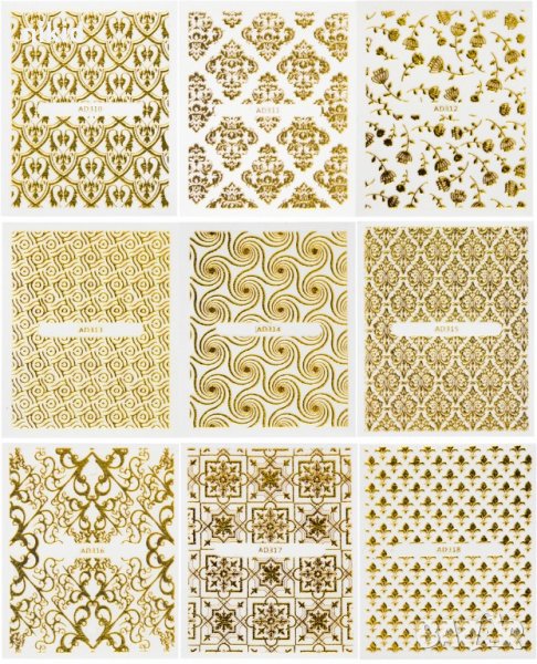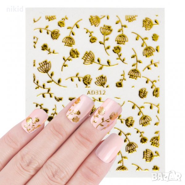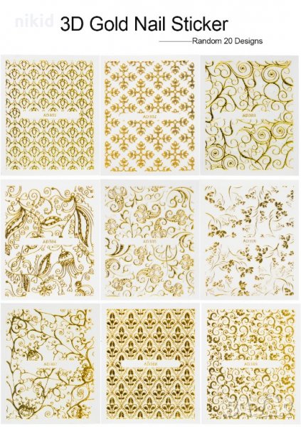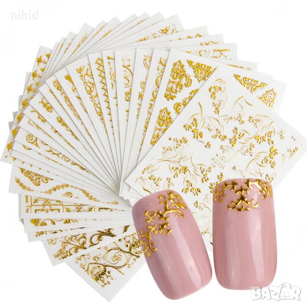 3D 20 листа златни ваденки стикери лепенки слайдери за нокти маникюр декорация орнаменти → Обява 22130491