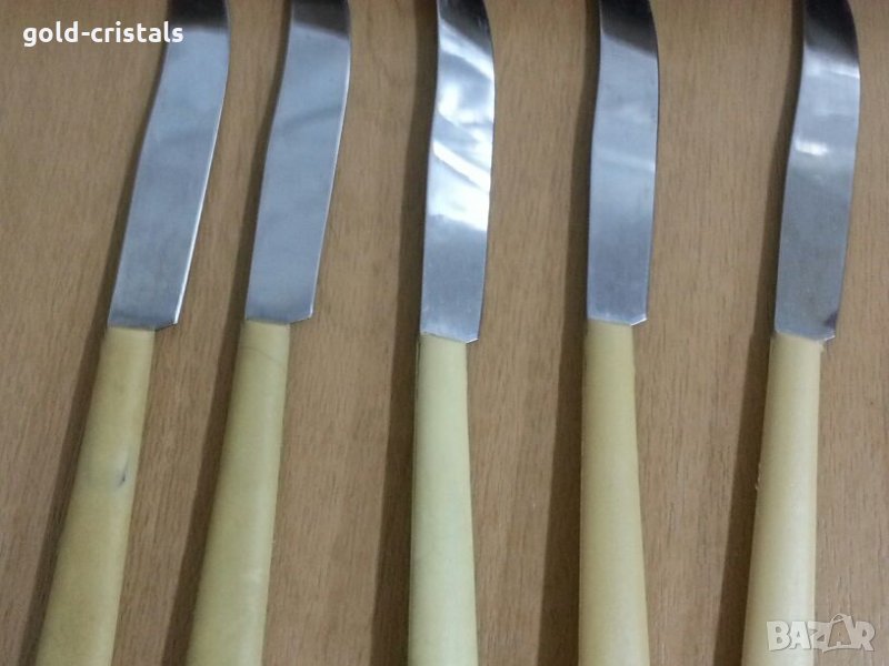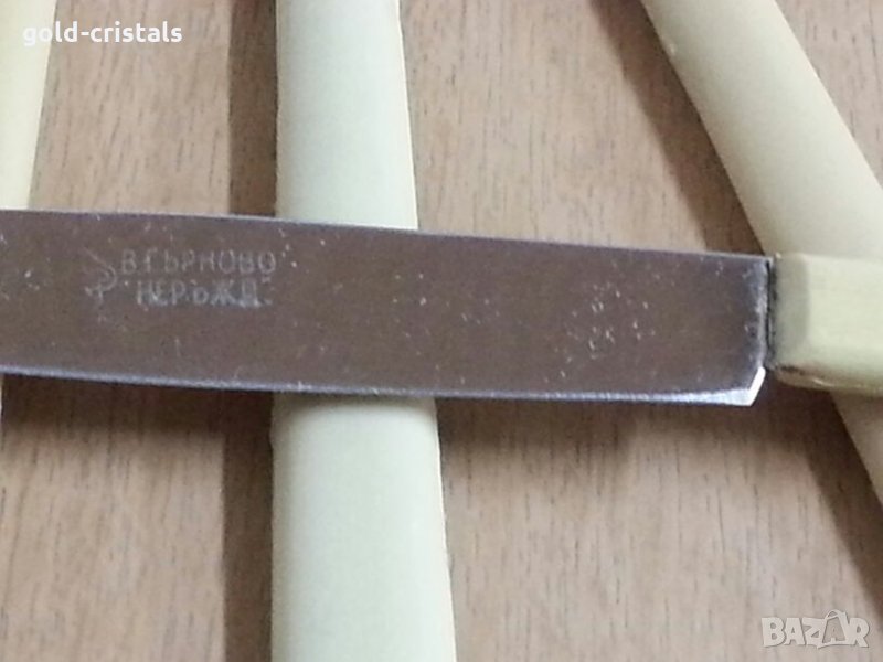 Стари български прибори за хранене ножове Велико Търново неръждаеми с пластмасова дръжка 6 бр -18лв налични 6 броя ножове сервиз комплект сет лот ретро арт декор винтидж колекция стари антикварни предмети обзавеждане за дома и семейството подходящи за подарък за ценители и колекционери
