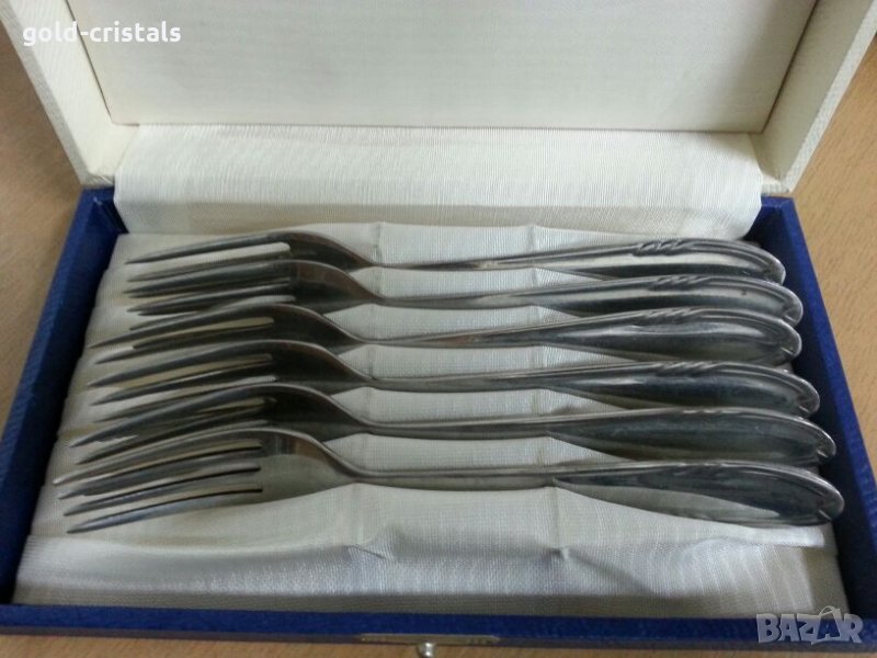 десертни вилички вилички Полша 6бр-15лв без кутия в кутия 35лв- продадени сервиз комплект сет лот ретро арт декор винтидж колекция стари старинни антикварни предмети обзавеждане неизползвани старо производство Полша неръждаеми масивен дебел материал. Ретро стари арт декор винтидж колекция стари сервиз комплект сет лот прибори за хранене ви лични вещи за дома и семейството подходящи за подарък за ценители и колекционери