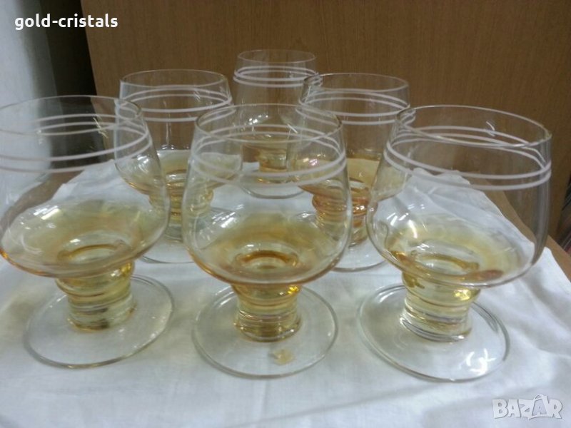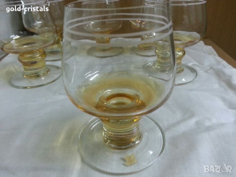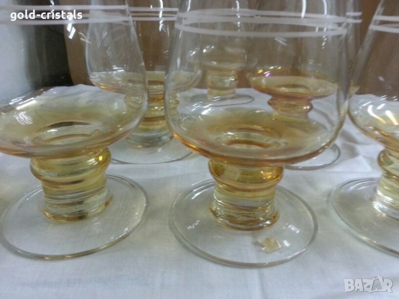 Сервиз чаши за аперитив вино ракия уиски калиево кристално цветно перлено стъкло комплект сет лот ретро стари старинни антикварни арт декор винтидж колекция стари старинни антикварни предмети обзавеждане за дома и семейството подходящи за подарък за ценители и колекционери неизползвани без забележки