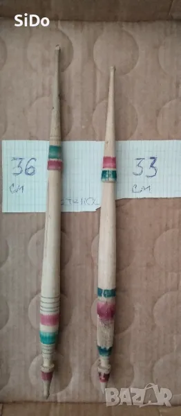 Чекрък за предене на вълна от 1937г. и 4 бр.масури с размери от 27 до 33 см +2 вретена за предене → Обява 22186162