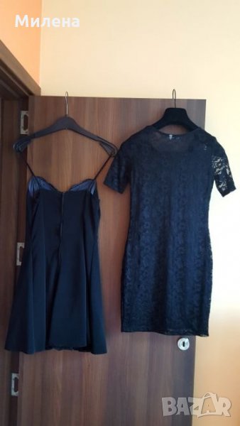 Черна, изключително стилна и елегантна рокля, с тънки презрамки и ефектни пайети - роклята е ръчна изработка. Пайетите са зашити около деколтето на платка, която има възможност да се махне. Това прави роклята подходяща, както за официални поводи, празници, абитуриентски балове, сватби, така и за по-ежедневно носене. Има подплата, която й придава малък обем в долната част. Обличана е само веднъж за повод. Размерът й е S - М, дължина от презрамката - 85 см, гръдна обиколка - 82 см, талия - 70 см. Роклята е на дизайнерката Джина Ник. Цена - 20 лв. Черна елегантна дантелена рокля с къс ръкав. Дължина на роклята - 79 см. Размер - S. Обличана е само веднъж за повод. Цена - 20 лв. При покупка на двете рокли, получавате 2 подаръка - 2 поли. Едната пола е в сиво и черно, ластична и секси. Дължина - 53 см. Размер - S., с ластик на кръста, което я прави удобни за носене. Другата е маркова бяла пола STREET ONE с 2 джоба и странични ефектни връзки с регуриращо се набиране. 100% памук, има подплата, с ластик на кръста, което я прави удобна за носене. Размер - S. Дължина - 54 см. Полите са чисто нови и качествени, без никакви забележки, подходящи за подарък. Двете поли могат да бъдат закупени и отделно от роклите на много добра цена за двете - 20 лв. Цена на двете рокли с 2 подаръка - 40 лв.!!! Офертата важи до края на месеца и не подлежи на коментар!!! Не приемам размяна.