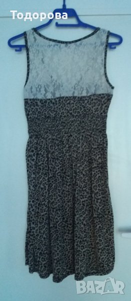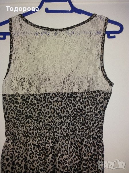 Рокля в тигров десен с дантела в горната част и ластик в кръста → Обява 22196829