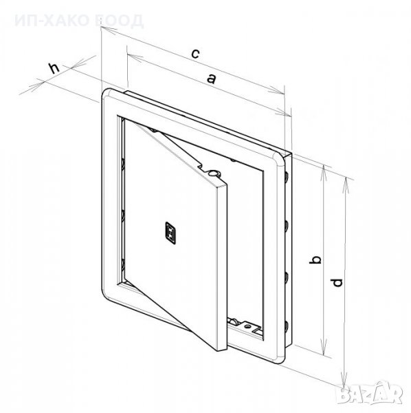 Начин на инсталиране: в готовия отвор според размери a,b зазидваме (гипсираме) рамката. Рамката зазидваме без вратичката, при условие да се запази положението на рамката без деформации, което улеснява монтирането и демонтирането на вратата. След втвърдяване монтираме вратичката.