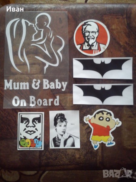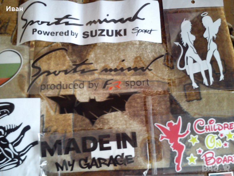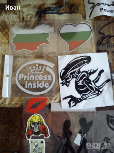 Богато разнообразие на ловни ,риболовни , спортни , забавни , тунинг , секси женски силуети , животни , цветя , знамето на различни държави в различни форми и т.н . стикери.Лепят се на чиста ,суха и гладка повърхност.