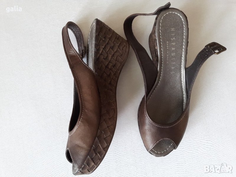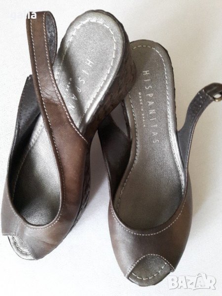 Дамски сандали от естествена кожа на испанския бранд Hispanitas. Обувките Hispanitas съчетават опита на най- добрите дизайнери на обувки в Испания и традициите на Аликанте в областта на висококачественото производство на обувки. Цветът на сандалите е опушено кафяво, като отпред е по тъмен, а отстрани е по светъл нюанс . Дължина на стелката 26 см .Височина на платформата 2/6 см .