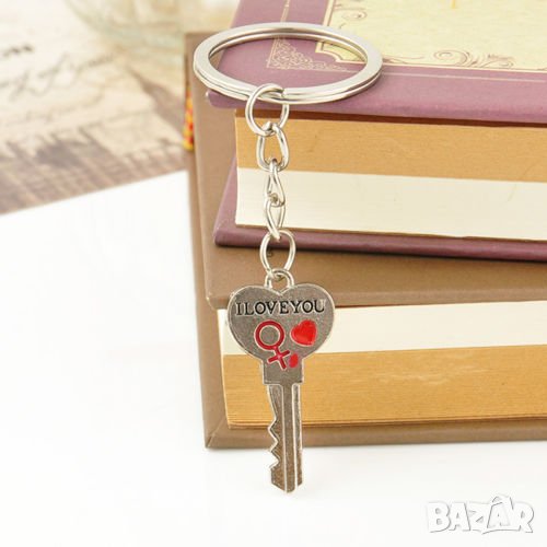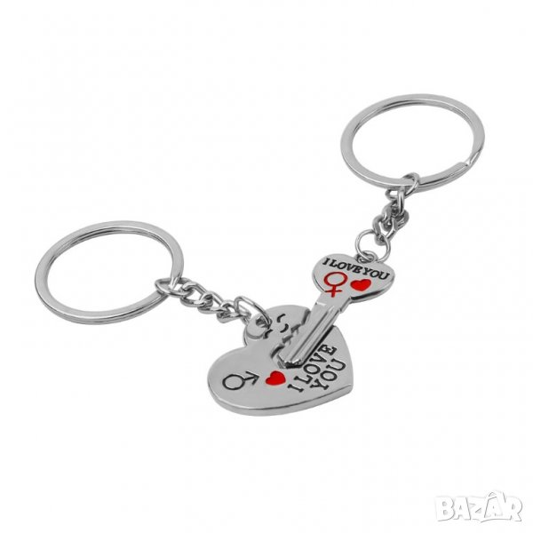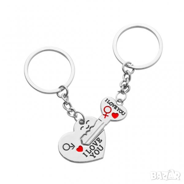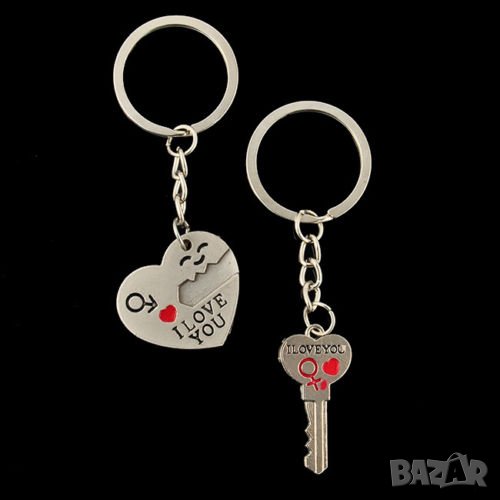 Двоен ключодържател тип Сърце и Ключ за него с надпис i love you и на двете части. Идеален подарък за свети валентин или за важно събитие. Подходящ за жени и мъже. Уникален артикул с който да зарадвате любимия/любимата. В пакета влизат 2 ключодържателя: Сърце и Ключ за него с надпис i love you и на двете части.