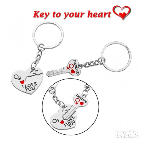 🔐💗 Сърце и Ключ за него - двойка ключодържатели за влюбени