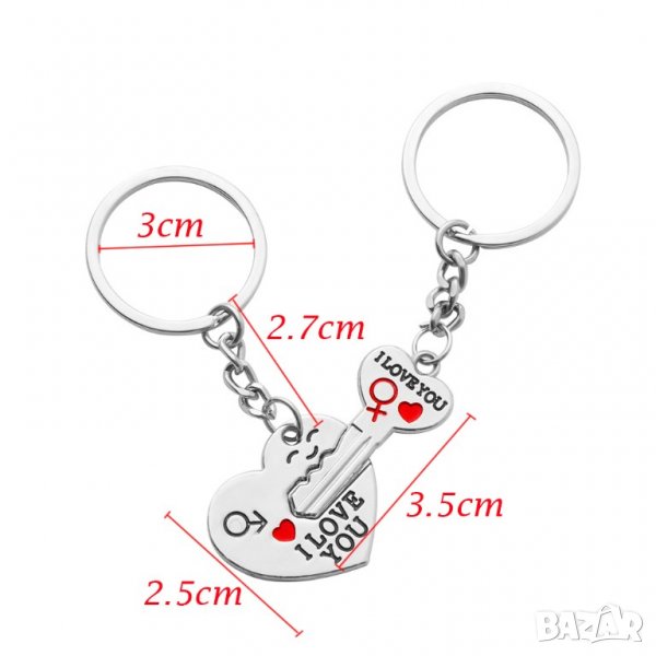 (пакета включва 2 ключодържателя двете части "Сърце и Ключ за него" както е показано на снимката!)