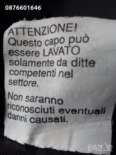 Якето на снимките не изглежда ефектно и ново, но всеки който желае да го види на място, сам ще се убеди чe е страхотно, особено като се облече. На него имаше един много дълъг (около 30 см.) черен етикет до белият който е изрязан защото много грозно стърчеше, На него беше упоменато името на фирмата и кратка история с везани златни букви, както и надписи на 10 езика с упътвания за поддържането му.