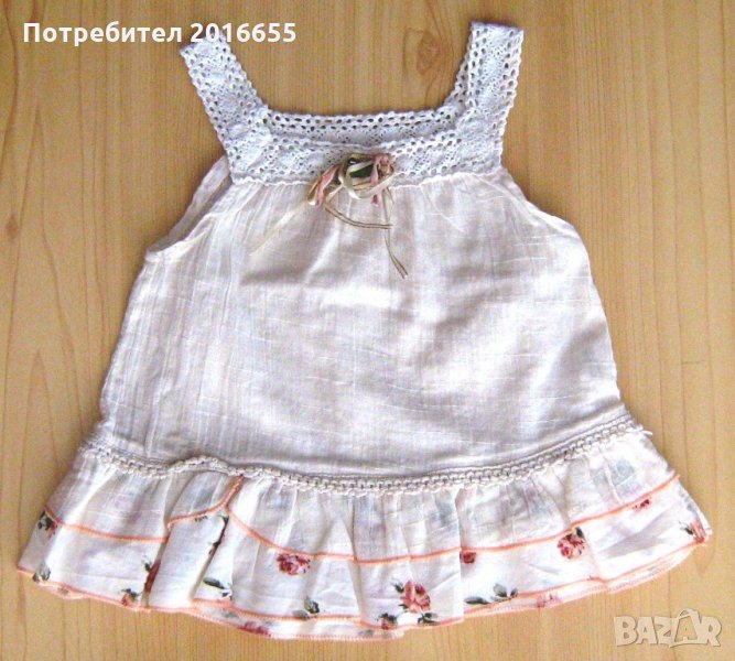 памучно 100%. Блузката е с дължина 38 см., гръдната обиколка е 54 см. Полата е