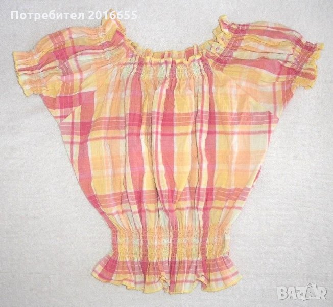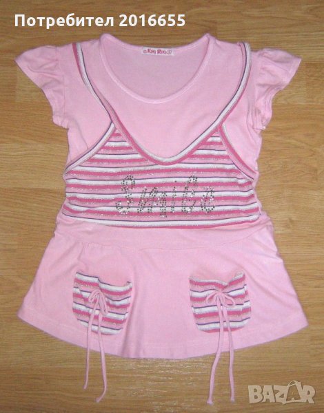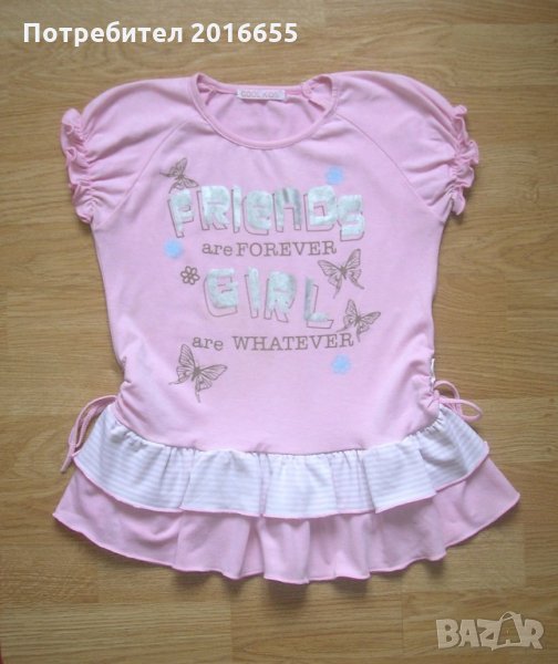 - туника с къс ръкав, розова, с волани и връзки отстрани - 4 лв.