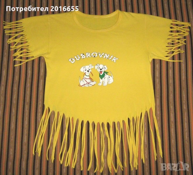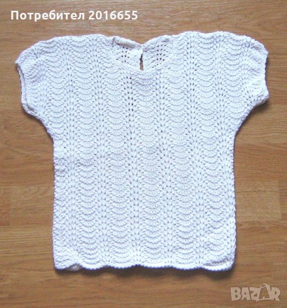 е много бледо жълт, дължина 44см., ширина 32 см., от рамо до рамо 30 см, 100% памук.
