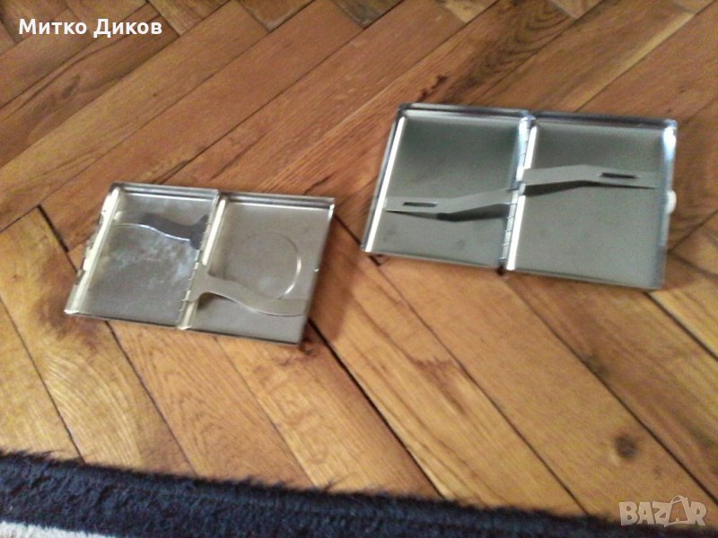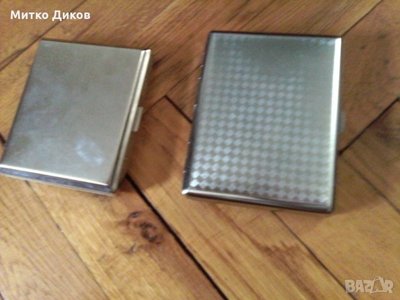 Табакерите са две като цената е на брой по 5лв-на тази с емблемата на джойнт -продадена-размерът е 95мм на 75мм и на другата 105мм ва 80мм-изпращам по еконт с отстъпка