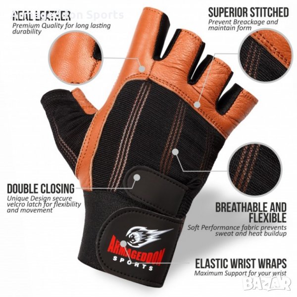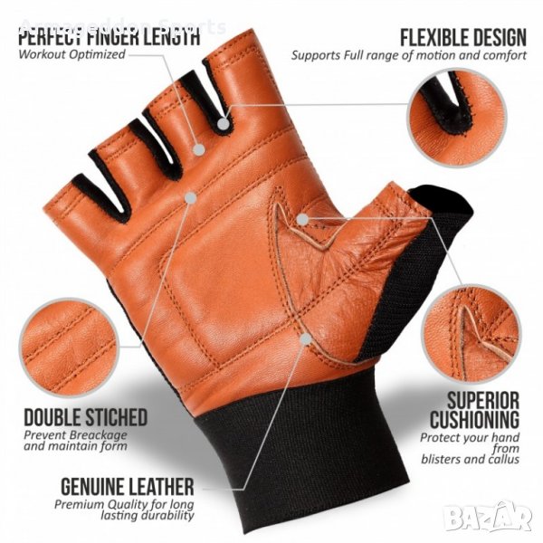 КАЧЕСТВО И СИГУРНОСТ: Представяме Ви, качествените, удобни и иновативни фитнес ръкавици от марката Armageddon Sports. Ръкавиците са изработени от естествена кожа в комбинация с плат, изработени по специална технология, която отвежда влагата навън и не изпотява ръцете. Качеството на ръкавиците е на най-високо ниво, двойният шев гарантира дълъг живот, дори след многократна употреба и пране. За Вашият комфорт се грижи специалната пяна в дланта на ръкавиците, която предпазва от мазоли и охлузвания.