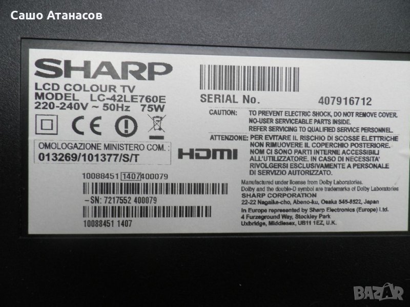 SHARP LC-42LE760E със счупена матрица ,17MB90-3 ,17IPS71 ,VES420UNVL-3D-S01 ,6870C-0451A ,17WFM03