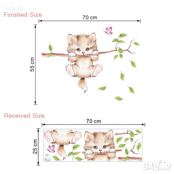 чисто нов стикер, самозалепващ се, при желание лесно и без нарушаване на стена/боя се отлепва с лекота.