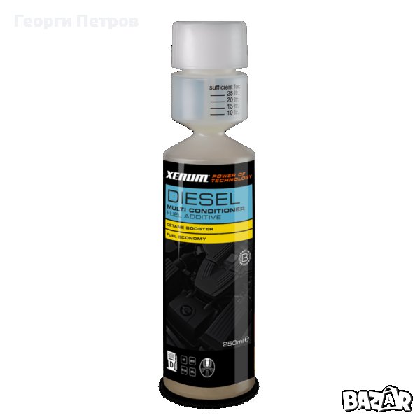 Xenum Diesel Multi Conditioner е добавка, подобрител за дизелово гориво предназначен за употреба при всяко зареждане. Препарата за дизелово гориво поддържа и смазва цялата система, особено горивната помпа, инжекторите, турбото и FAP филтъра.