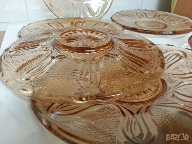 Антикварни чинии цветно стъкло 53г българско старо производство масивно цветно стъкло цвят кехлибар карамел 6бр-3лв 5бр-25лв без забележки сервиз комплект сет лот стари старинни ретро арт декор винтидж колекция стари старинни антикварни предмети обзавеждане за дома и семейството подходящи за подарък за ценители и колекционери