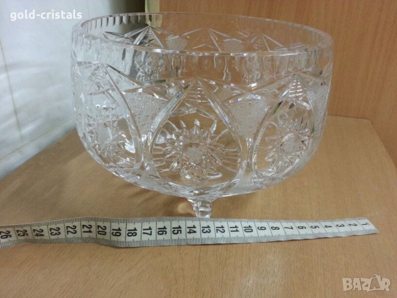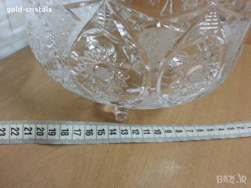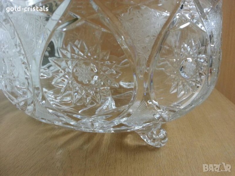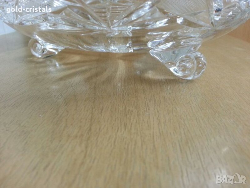 Голяма кристална купа фруктиера нова масивен и тежък кристал богато ръчно гравирана кръгла на три крачета ретро арт декор винтидж колекция стара стари антикварни предмети обзавеждане за дома и семейството подходяща за подарък за ценители и колекционери